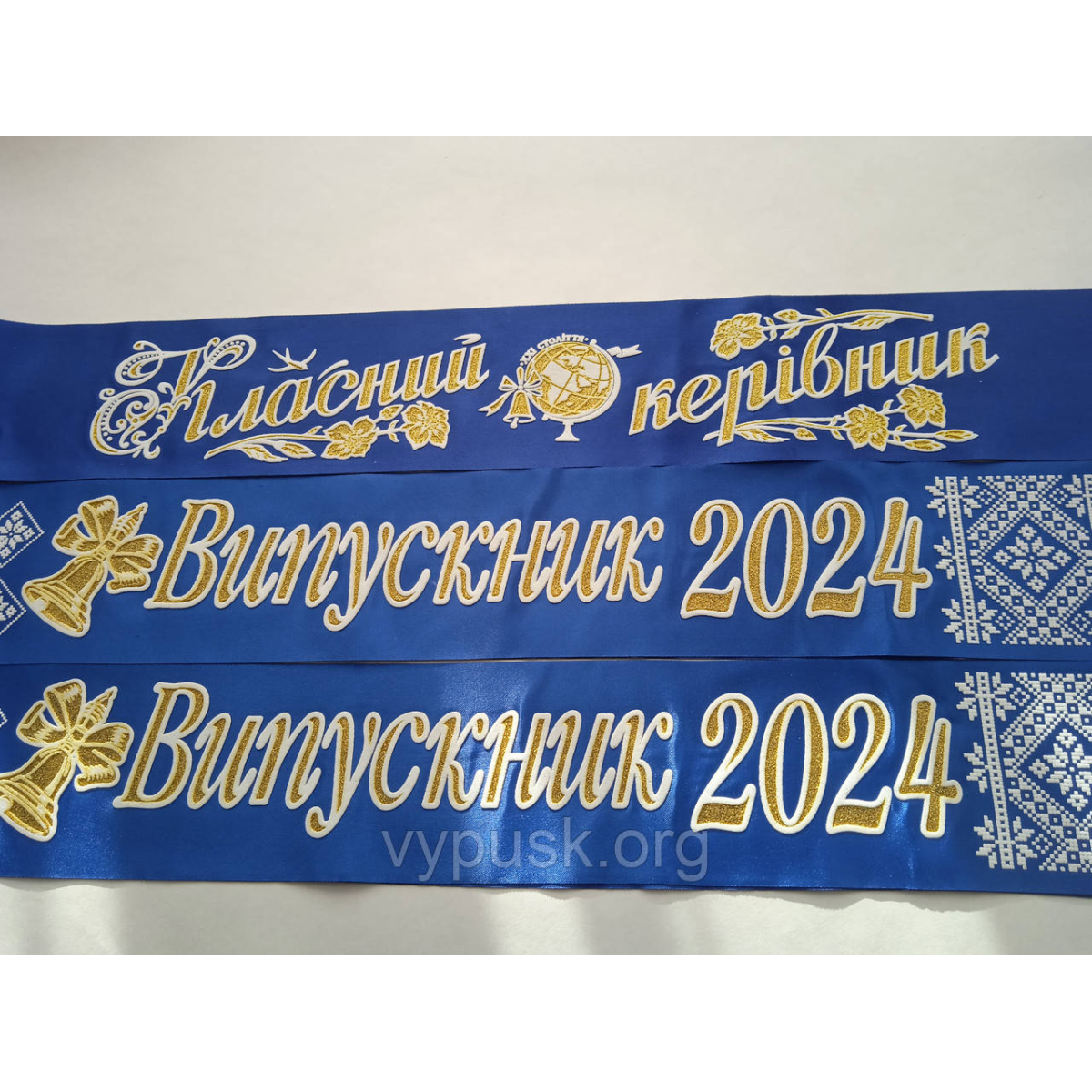 Стрічка “Випускник 2025“ і “Випускниця 2025“ синя атласна,з 3д написом