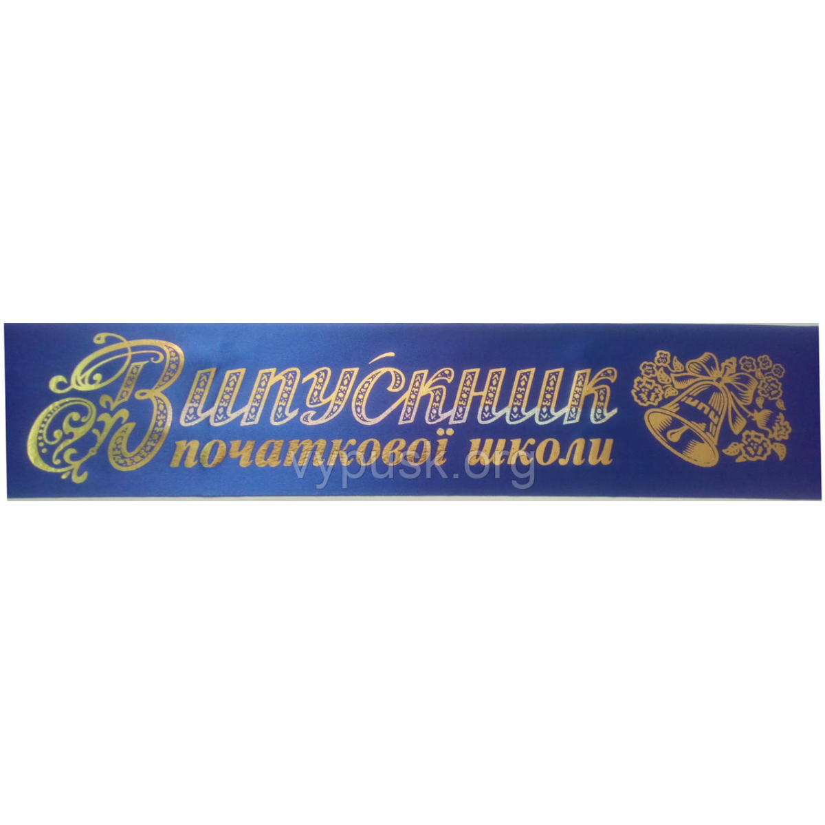 Стрічка “Випускник початкової школи“ синя атласна із позолотою