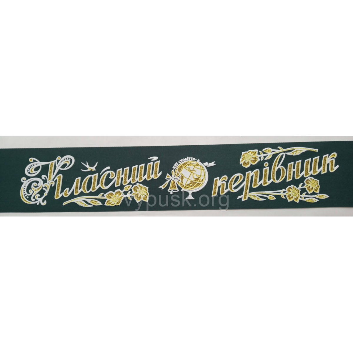 Стрічка “Класний керівник“ Бордова атласна із 3Д написом та золотим глітером.