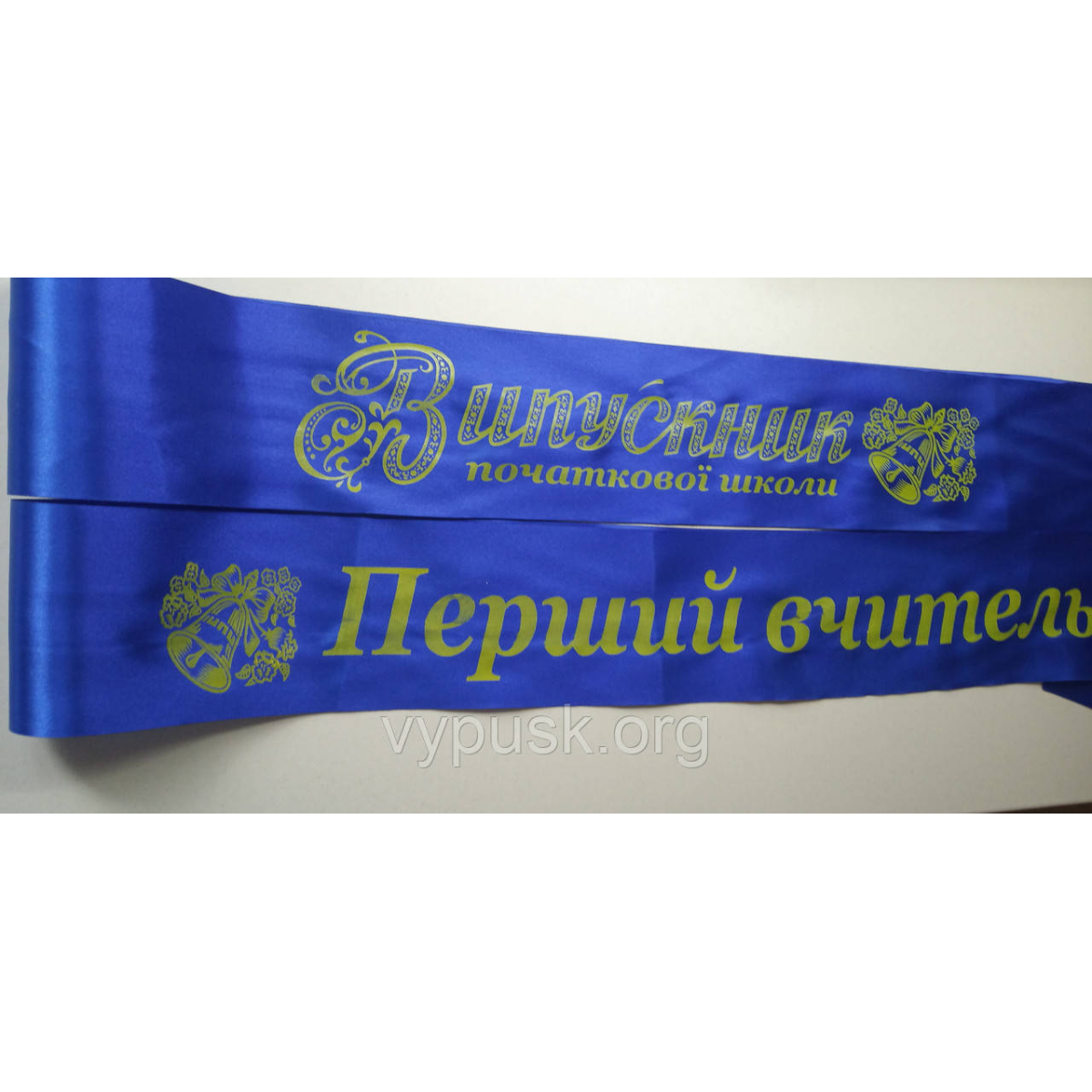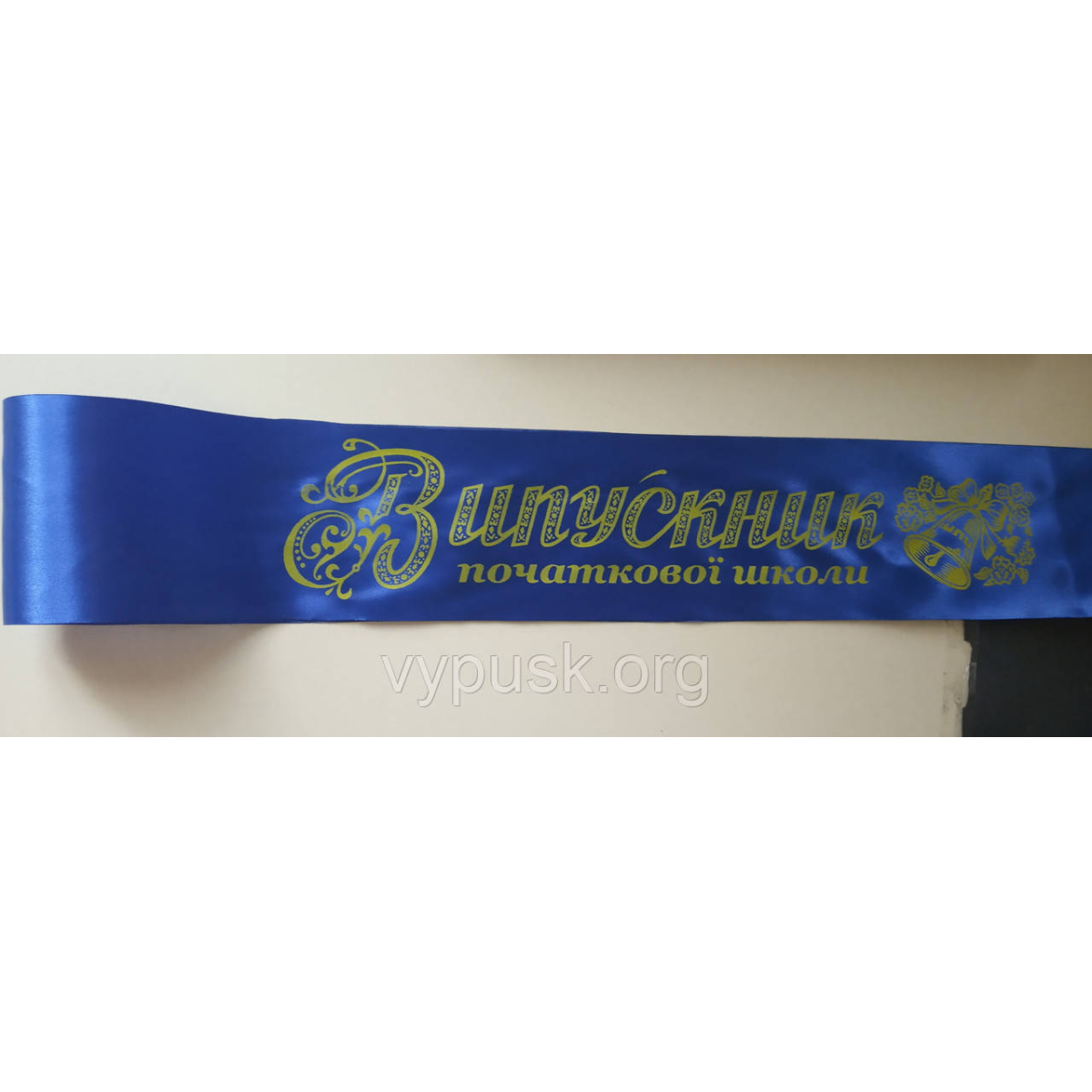 Стрічка “Випускник початкової школи“ синя атласна із позолотою