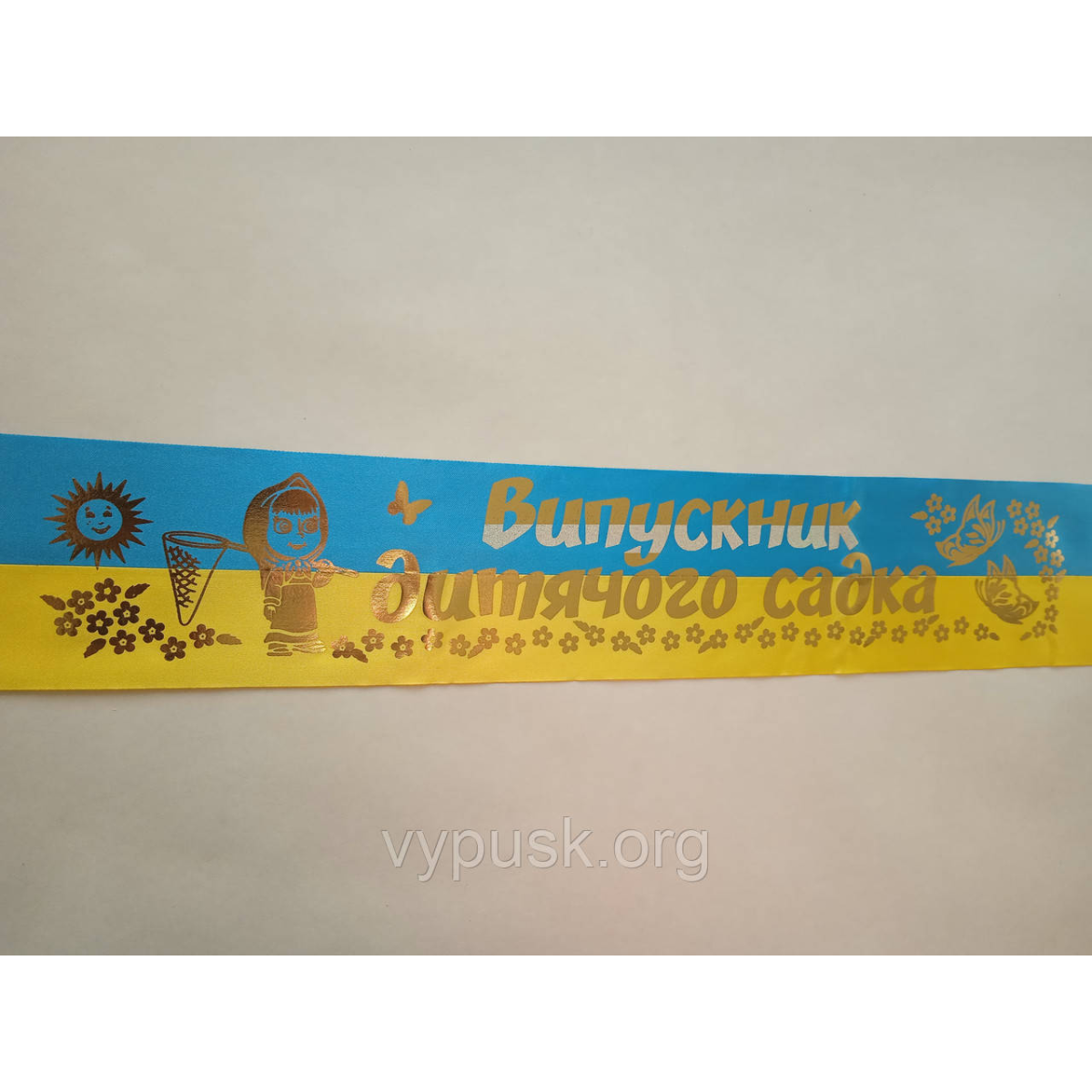 Стрічка “Випускник дитячого садка“ синьо жовта шовкова