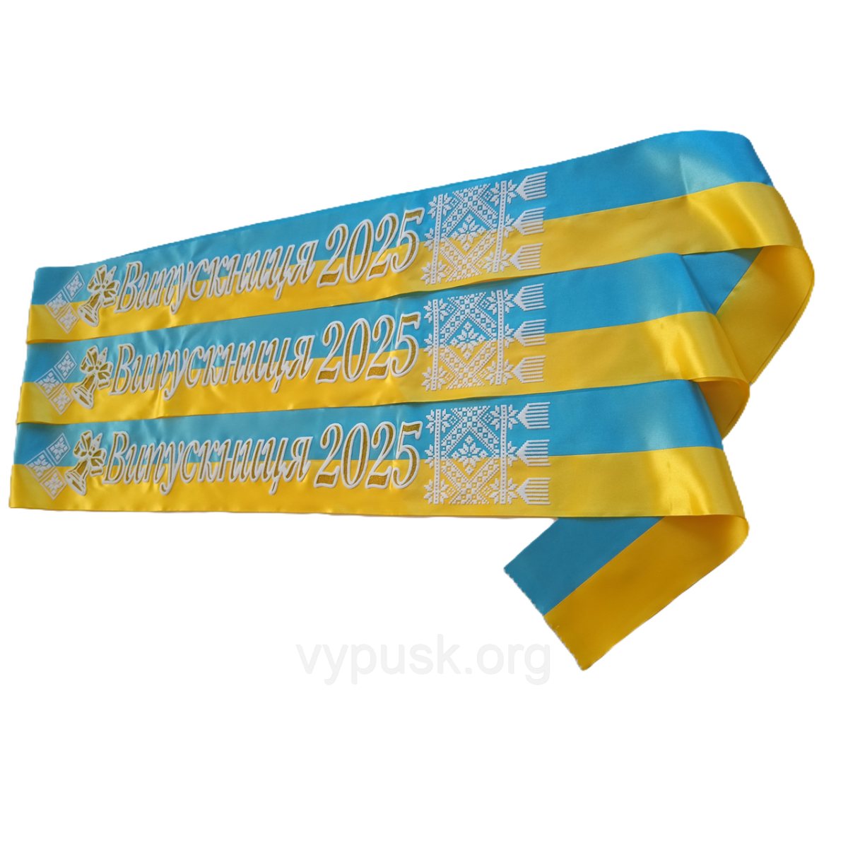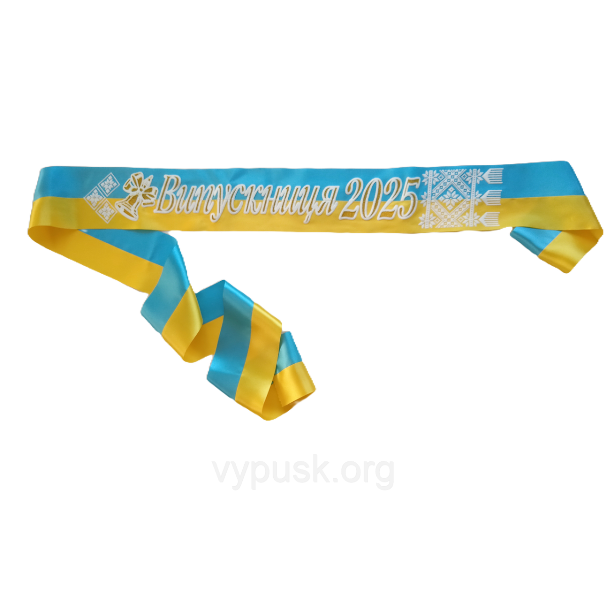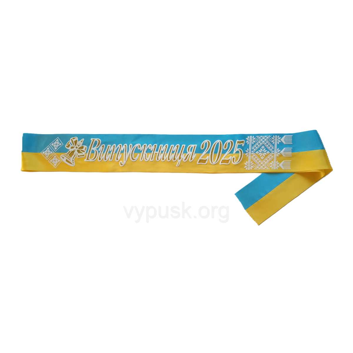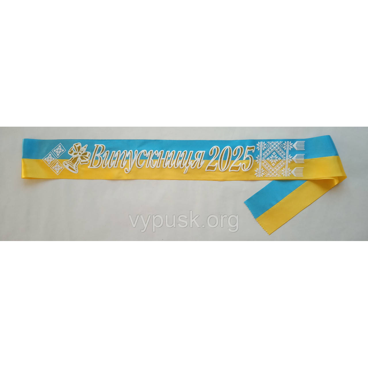 Стрічка Випускниця 2025 синьо-жовта атласна з об“ємним написом