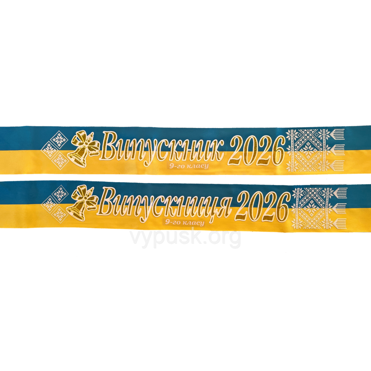Стрічка Випускник 2026 9ого класу 3D синьо-жовтий
